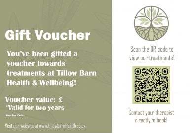 Ideal for any occasion. You select the voucher amount, and the recipient can redeem it for any of our healing therapies here at Tillow Barn.