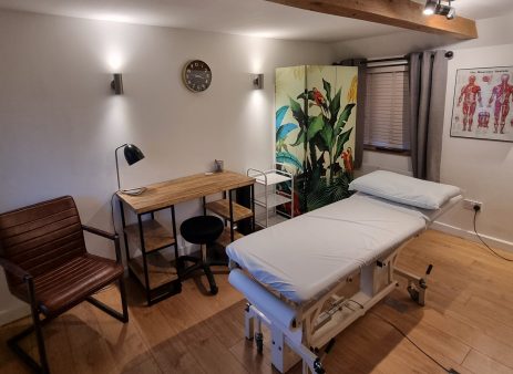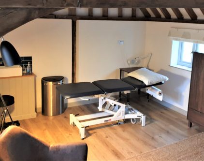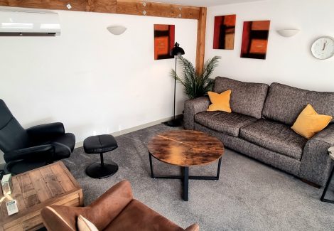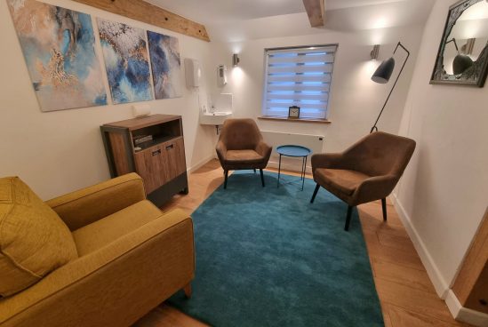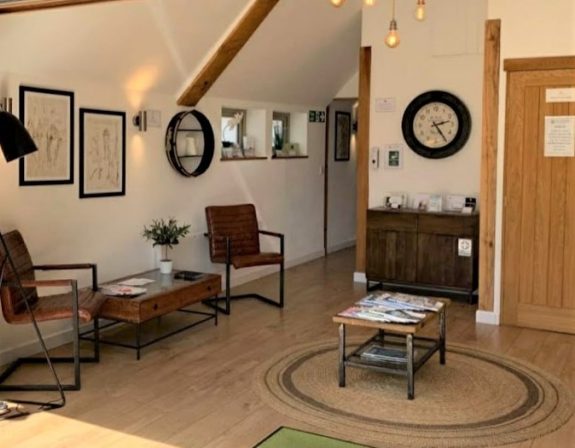 A bright, airy space where clients can relax in comfortable surroundings before or after their sessions.